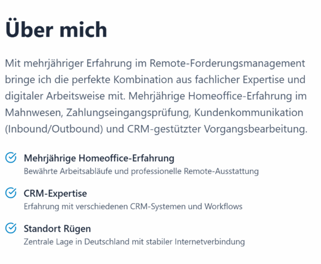 Zusätzlich zu meiner Kernkompetenz im Forderungsmanagement bringe ich vielfältige digitale Fähigkeiten mit